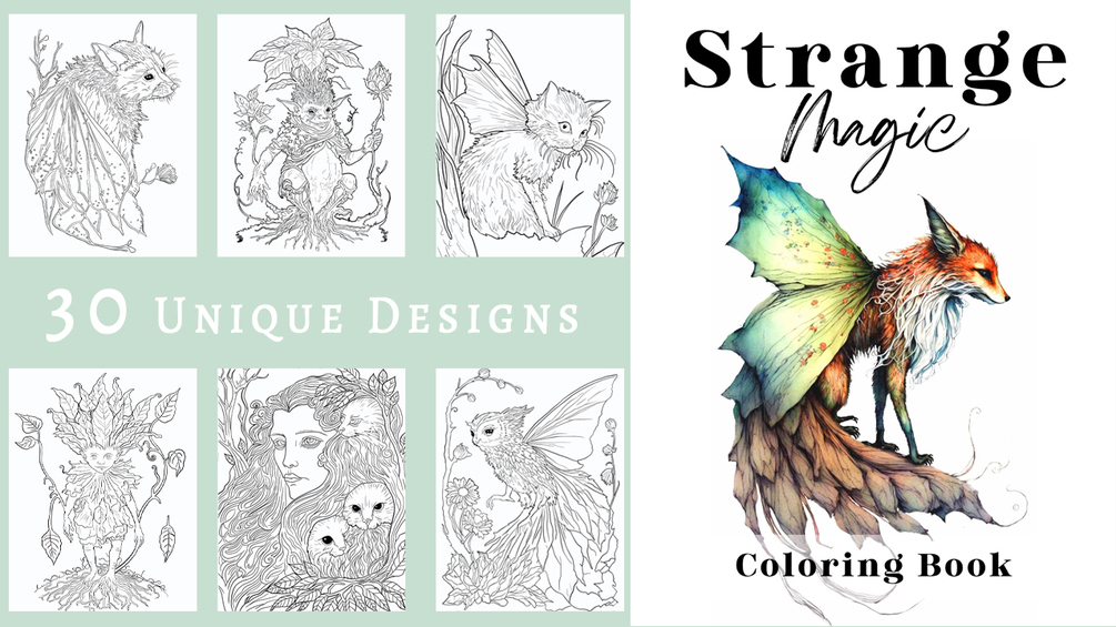 Strange Magic Coloring Book is a digital downloadable PDF coloring book for you to print at home. It features 30 unique outline designs of whimsical nature creatures. + Bonus Color swatch page.